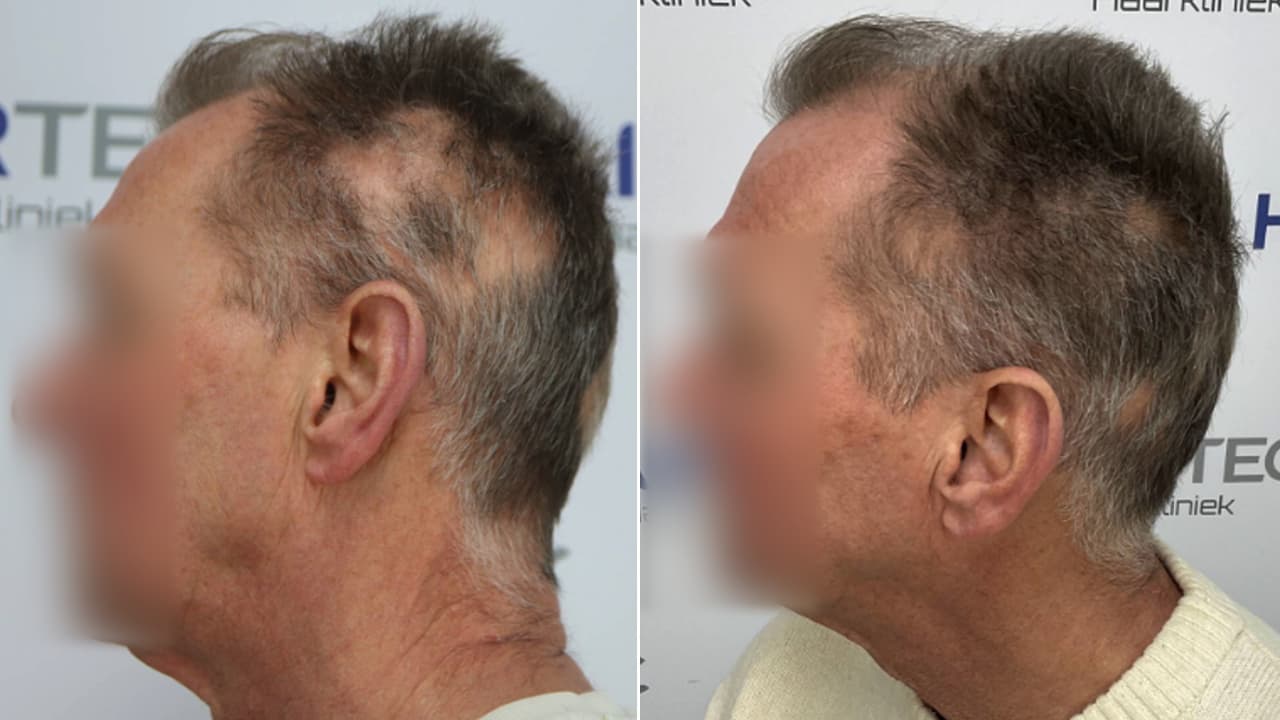 De voor en na resultaten van de receptorbehandeling laten zien hoe dunner wordende en kale gebieden zichtbaar worden verbeterd. Aan de hand van concrete resultaten krijgt u een duidelijk en betrouwbaar beeld van de effectiviteit, haardichtheid en het natuurlijke eindresultaat van deze behandeling.